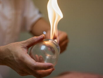 a. 화염을 부항 컵의 안쪽 깊은 곳으로 신속하게 넣었다가 바로 뺀 다음 부항 컵을 피부 표면에 얹는다. [필수]
